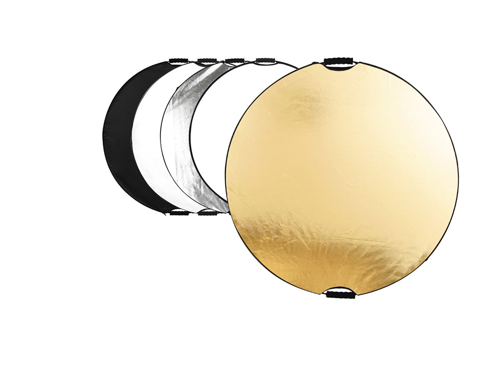 Cor: Rebatedores de luz são geralmente brancos, prateados ou dourados. Cada cor tem suas próprias características de iluminação. Por exemplo, o branco é usado para iluminar áreas sombreadas, o prateado é usado para criar reflexos de luz e o dourado é usado para criar tonalidades quentes.